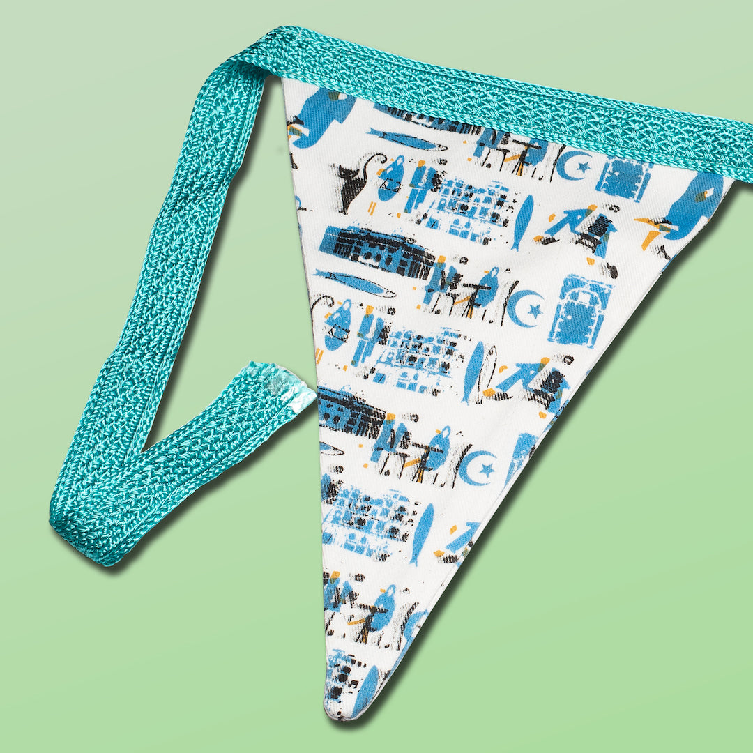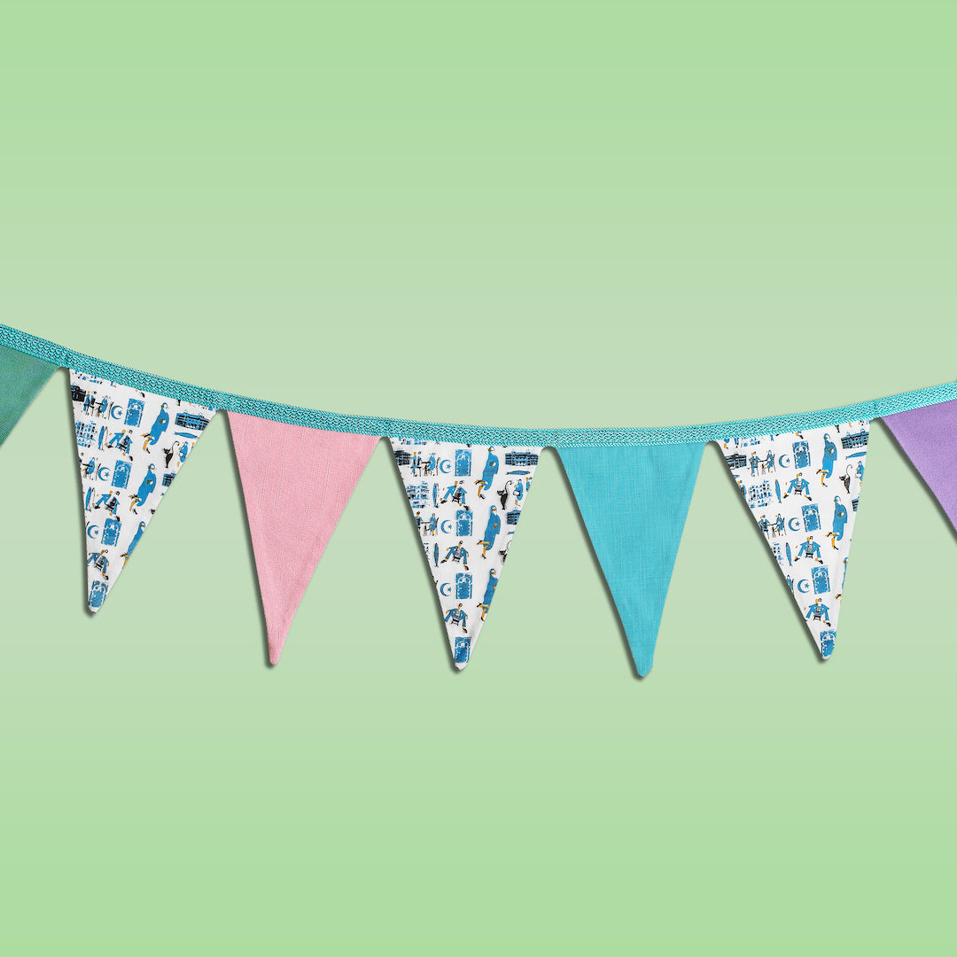 Donnez du volume et de la fantaisie à une chambre d’enfant ou de bébé avec cette guirlande colorée et festive de fanions. Une création originale des Corsaires Associés.
