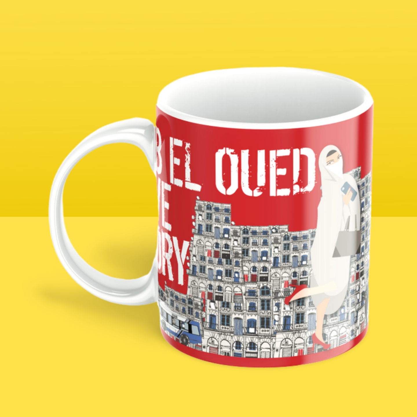 Son urbanité, ses rituels, ses monuments, ses personnages anonymes et ses héros… sous le coup de crayon du dessinateur caricaturiste Saad, retrouvez tout l’univers d’Alger sur ce mug en céramique.