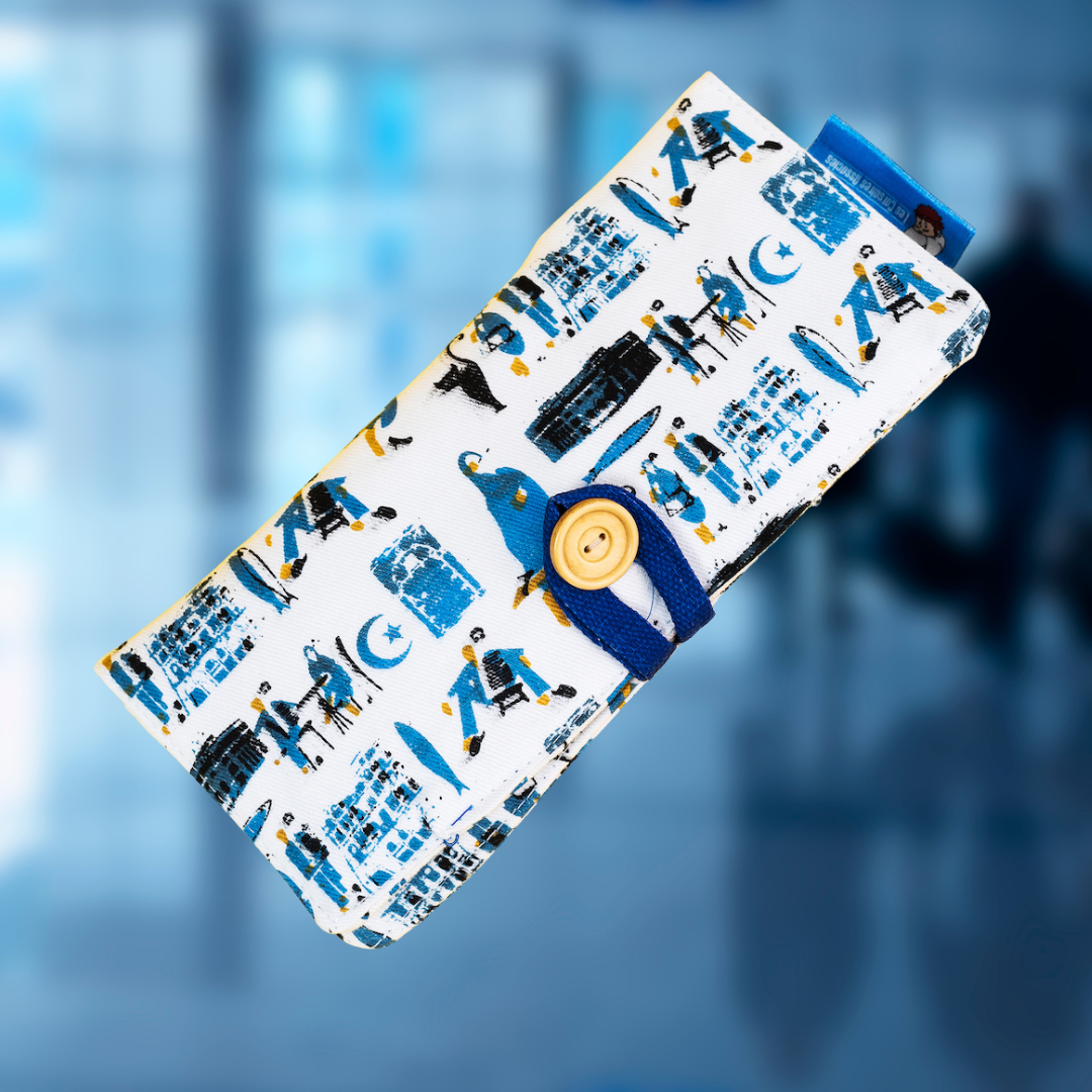 Dans la ligne textile 100% DZ des Corsaires Associés, je veux… le PORTE-DOCUMENTS ! Ligne Alger Pop. Une création originale des Corsaires Associés.